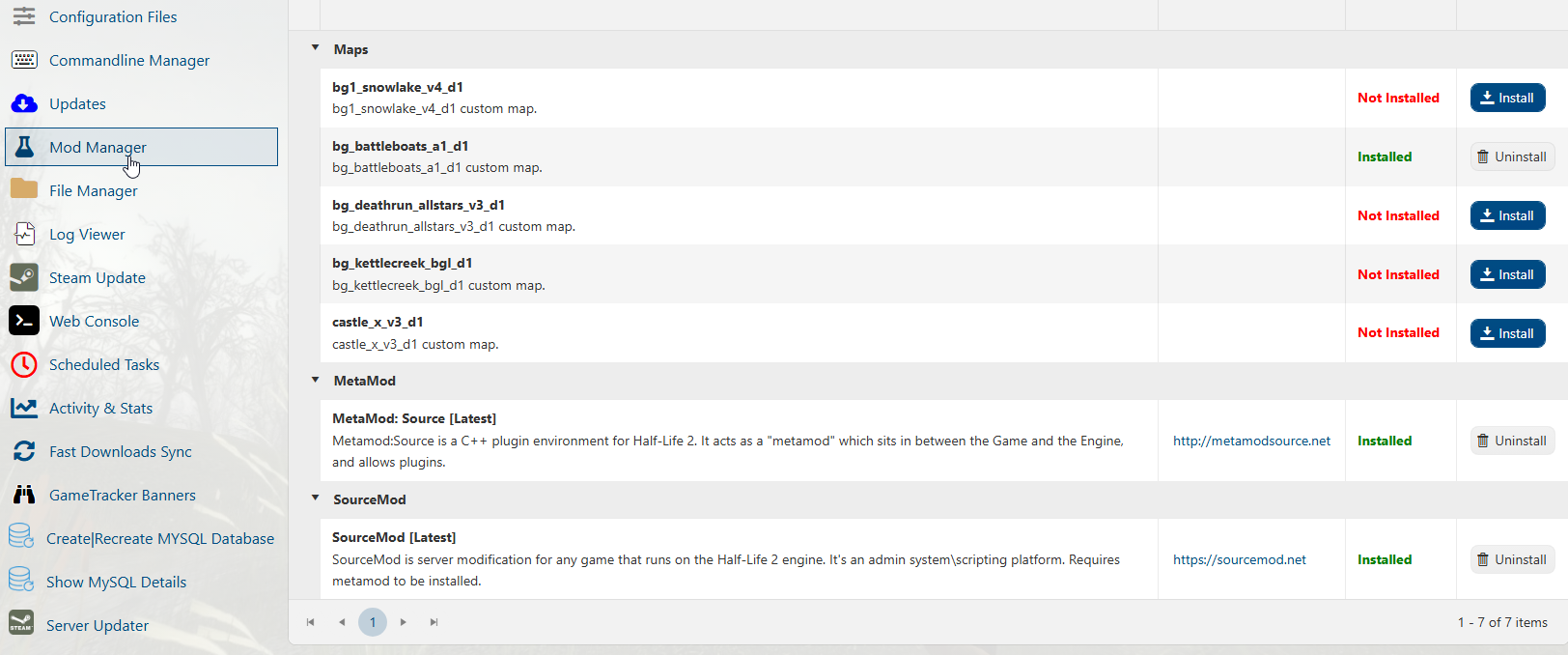 3. Locate and click Install MetaMod and SourceMod.