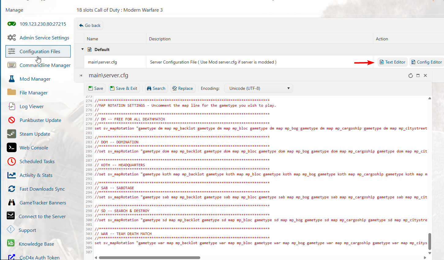 The following guide will show you how to change the map rotation on your Call of Duty 4 server.