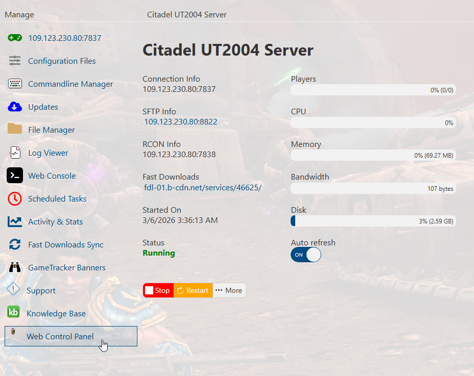 This guide will show you how to connect to the Web Control Panel of your Unreal Tournament 2004 server.